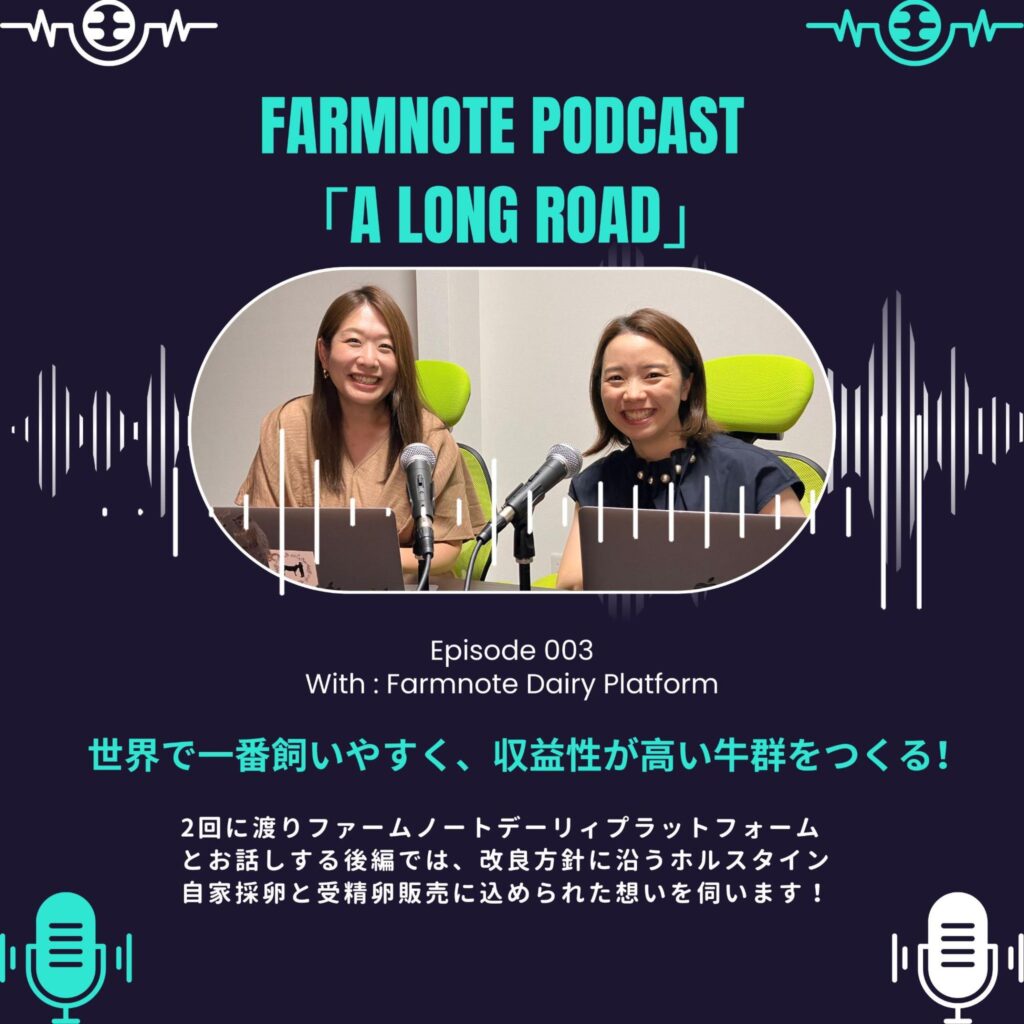 本Podcastでは、Farmnote Geneを活用し、経営の効率と収益性の両立を実践されているファームノートデーリィプラットフォームの取り組みを、前後編の2回に分けてご紹介しています!
